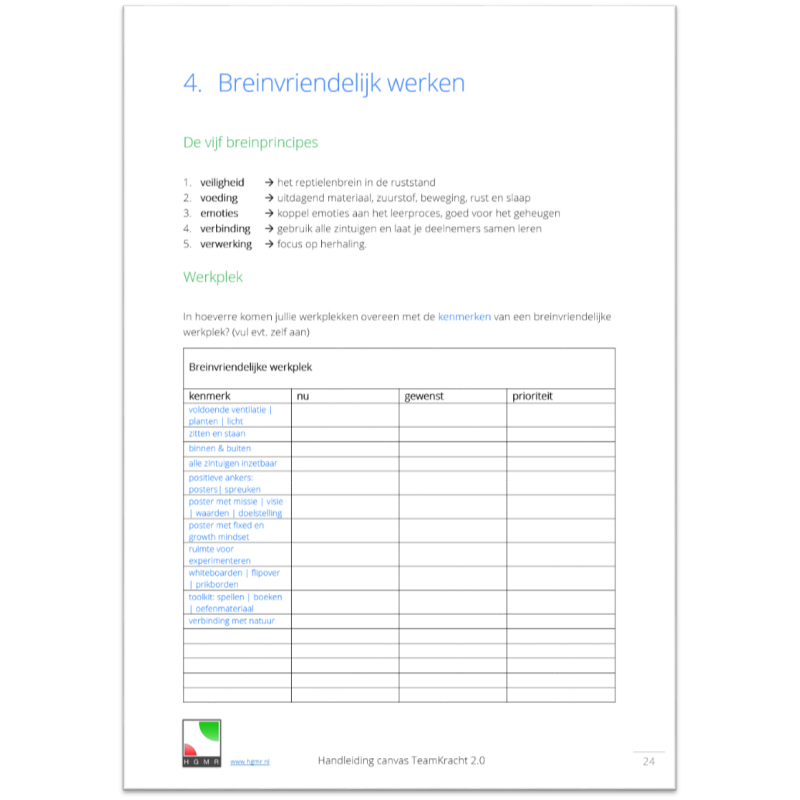 - Inclusief handreiking voor breinvriendelijk werken volgens de 5 belangrijke breinprincipes.